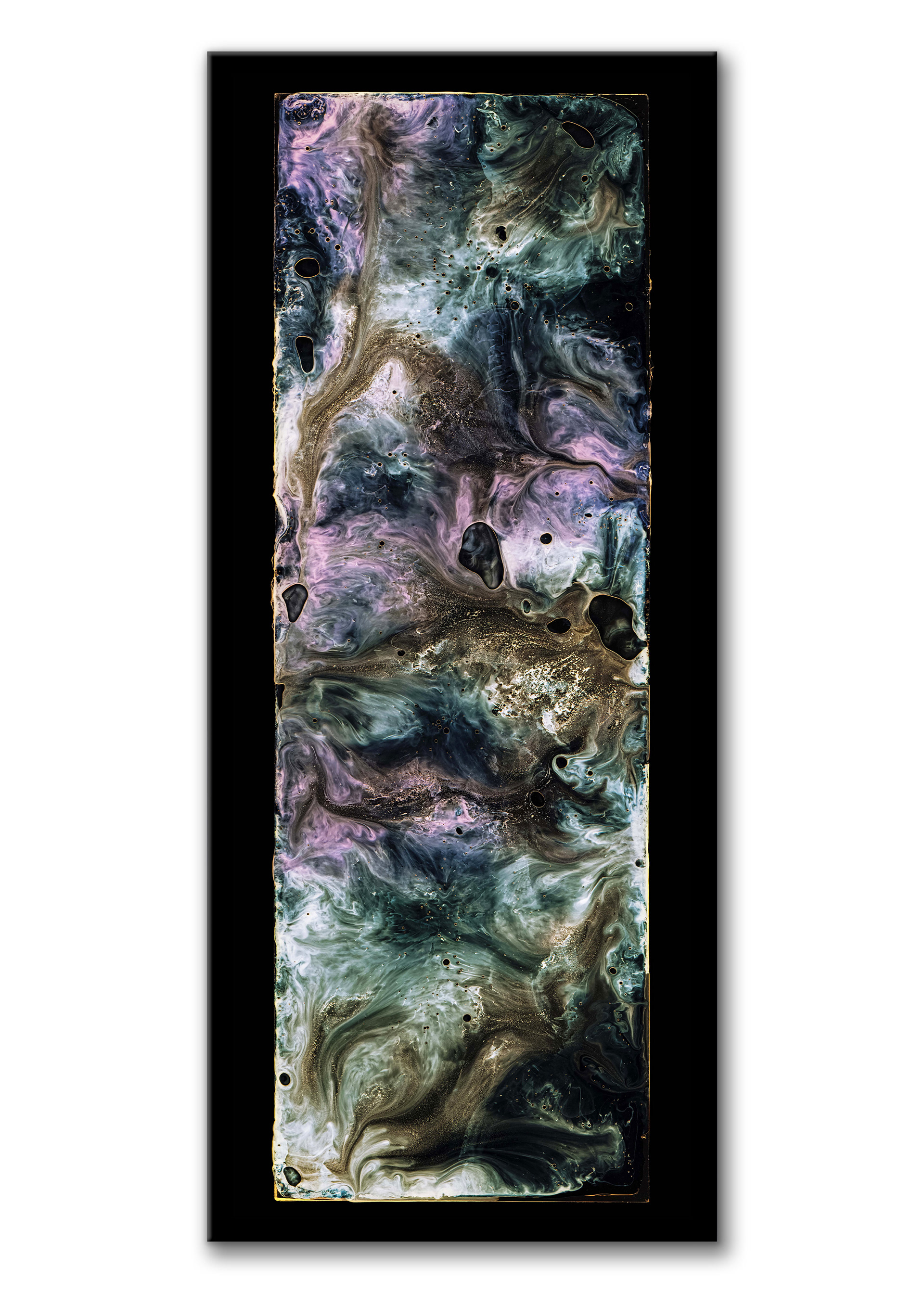 Documenting my exploration of fluid dynamics and natural abstraction through the cliché-verre technique, this ongoing series captures fleeting, macro-scale moments of interaction and reaction between traditional art media and everyday household substances.